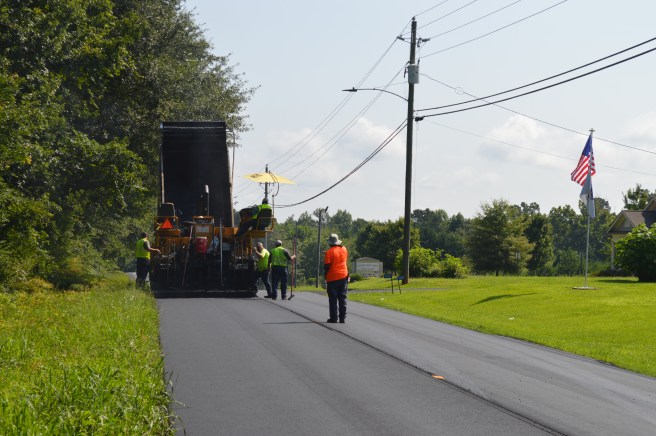 After nearly a decade, the section of New Hope Church Road that lies within the town limits of Between, has been resurfaced. The Town of Between in conjunction with the Walton County Public Works Department, completed the project on Thursday July 22nd in a matter of only six hours. This limited the inconvenience to travelers that routinely utilized this roadway. The cost of this work, which was funded with a state LMIG grant and Town of Between general fund resources, costs $32,184.00.