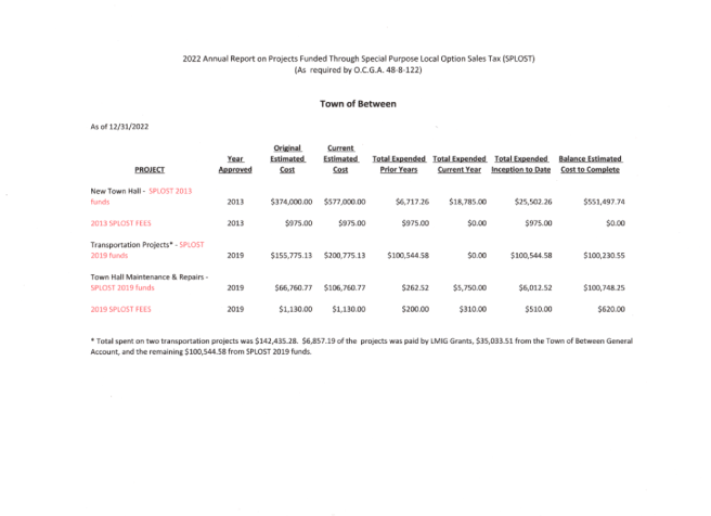 Attached is the proposed 2023 Town of Between Operating Budget & Revenue Projections. The budget will be presented at the December 13, 2022 Council Meeting for approval.